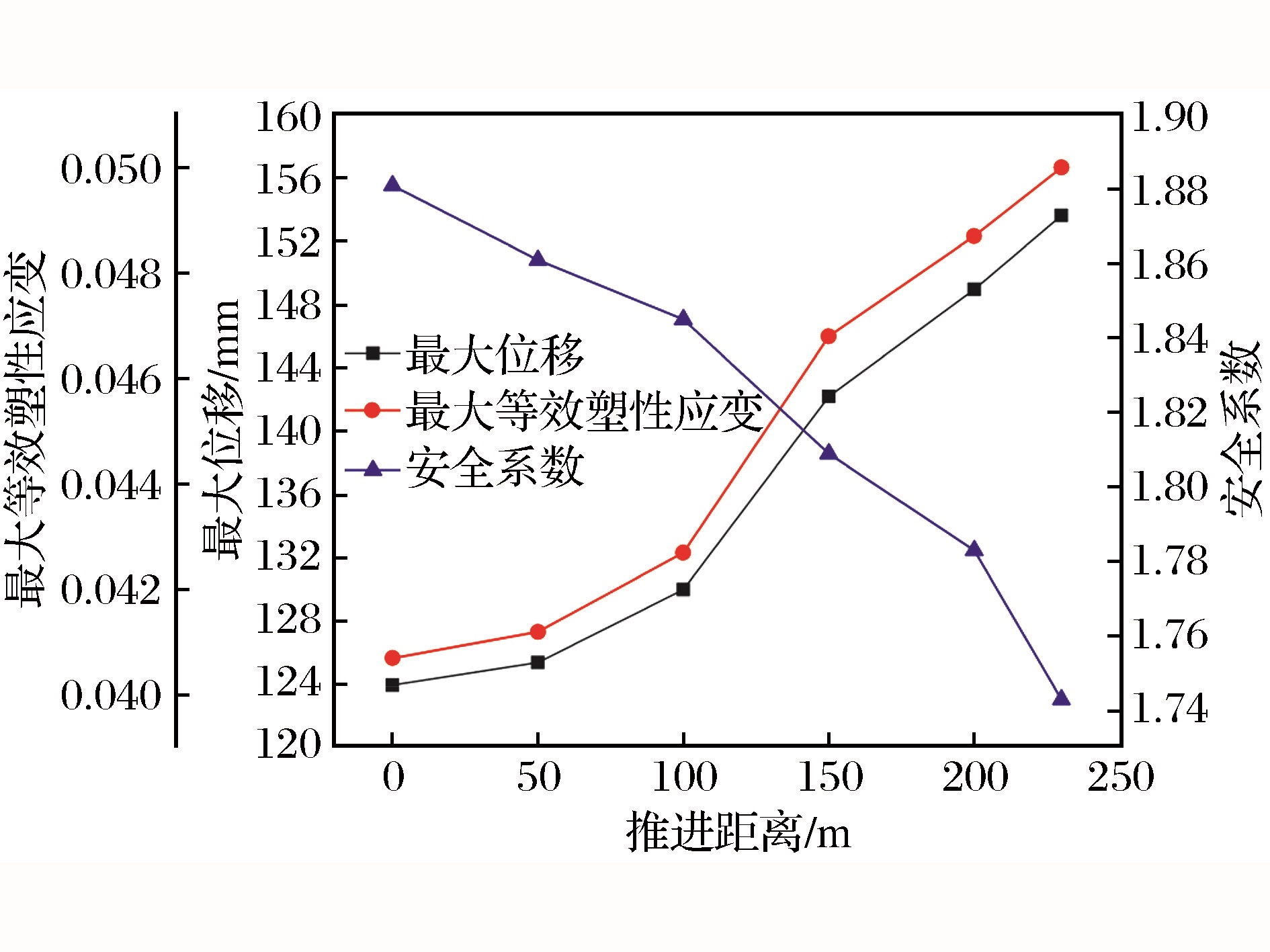 尾矿库虽然是矿山重大危险源与潜在环境污染源,但具有巨大开发潜力。推进尾矿资源安全回采及二次利用不仅能够解决尾矿库的安全与环境问题,而且对矿山可持续发展具有重大意义。基于渗流—应力耦合理论,运用COMSOL多物理场仿真软件建立尾矿库坝体二维模型。通过理论分析与数值模拟相结合的方法,系统研究了尾矿库回采过程中坝体的渗流规律、应力变化、变形特征及稳定性演化规律。结果表明:在渗流—应力耦合作用下,随着尾矿库回采的推进,尾矿库的干滩长度减小,饱和区域逐渐扩大,孔隙水压力、von Mises应力和最大剪应力均逐渐增大,导致尾矿坝的整体位移和等效塑性应变逐渐增加,安全系数逐步减小,尾矿库的稳定性呈下降趋势。尽管如此,尾矿库回采过程中的安全系数仍符合相关规范要求,在安全生产管理条件下,坝体能够安全稳定运行。该研究成果为尾矿库的安全回采提供了重要理论依据和工程技术参考。