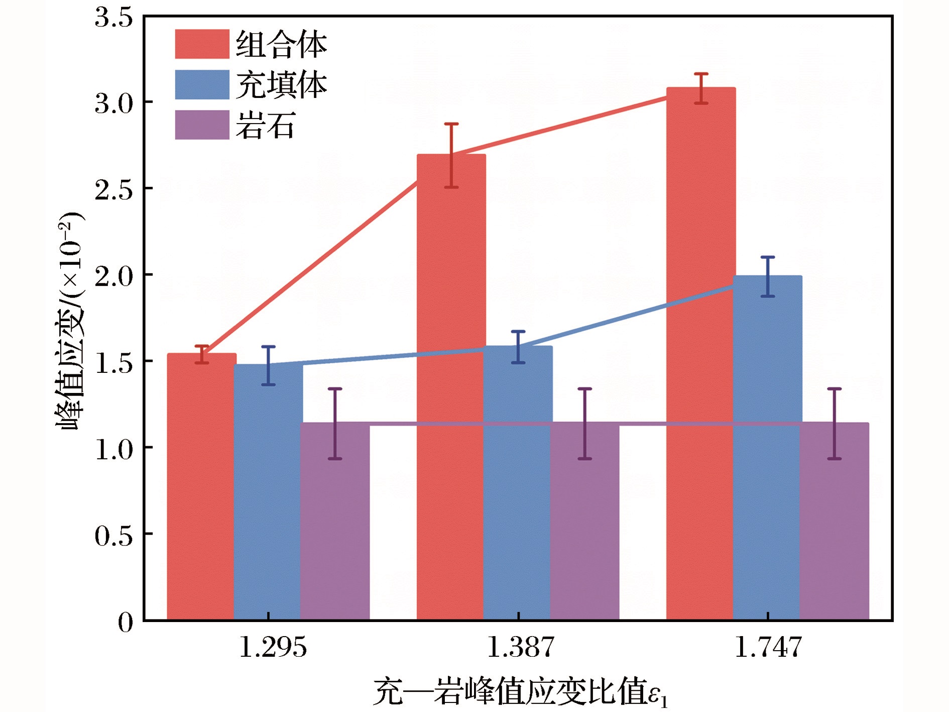 充—岩组合体是地下充填采矿法的主要承载结构。为揭示充—岩组合体的力学特征和裂纹扩展规律,通过控制充填体料浆浓度来改变充填体力学参数,开展充—岩组合体的单轴压缩试验,并采用声发射和数字图像(DIC)技术监测了试验过程。结果表明:(1)本批次试验试样的充—岩弹性模量比为0.072~0.102,峰值应变比为1.295~1.747,峰值强度比为0.124~0.243,组合体的弹性模量和峰值强度随充—岩模量比和强度比的增大呈先减小后增大的趋势,峰值应变随应变比的增大呈单调增加的趋势;(2)充—岩模量比、应变比和强度比的复杂作用改变了充—岩组合体的破坏顺序,比值小时,岩石先于充填体发生破坏,随着比值增大,充填体先于岩石发生破坏;(3)破坏过程中,声发射振铃计数聚集在峰前应力突降处与峰后阶段,声发射累计振铃计数随比值增大呈先减少后增加的趋势。充—岩组合体合理配比参数的耦合可以实现最佳的承载能力。