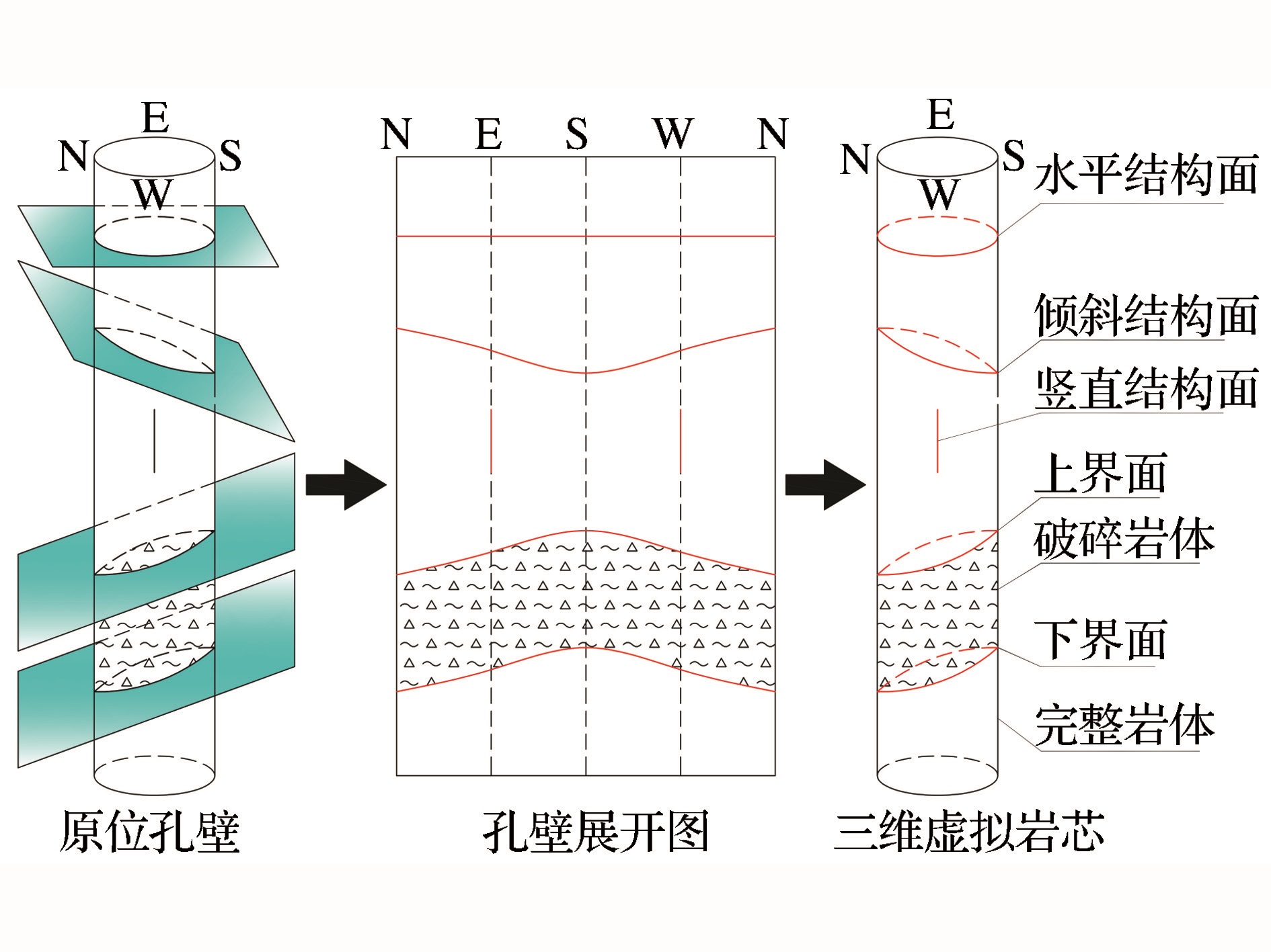 针对传统结构面特征参数获取技术和方法存在误差大、易受干扰等问题,以及岩体质量指标(RQD)在工程应用中存在的局限性,利用孔内电视技术识别岩体结构面,获取产状等参数,提出了基于孔壁影像数据的孔壁岩体质量指标(WRQD)的概念与计算方法,并通过工程实例进行了对比验证和分析。研究结果表明:通过孔壁影像数据可精确获取地下岩体结构面产状等关键参数,分析地下岩体结构面产状分布特征;岩体质量指标(RQD)与孔壁岩体质量指标(WRQD)的关系特征明显,WRQD值总体较RQD值大,但局部也存在WRQD值小于RQD值的现象,二者大小关系与结构面的类型、填充物类型、胶结程度及岩性等因素密切相关;各岩性WRQD值与RQD值的拟合优度R 2均大于0.83,孔壁岩体质量指标(WRQD)可作为岩体质量评价的依据。该研究为地下岩体探测和评价提供了新思路,有助于推动工程地质精细化勘察研究与实践。
