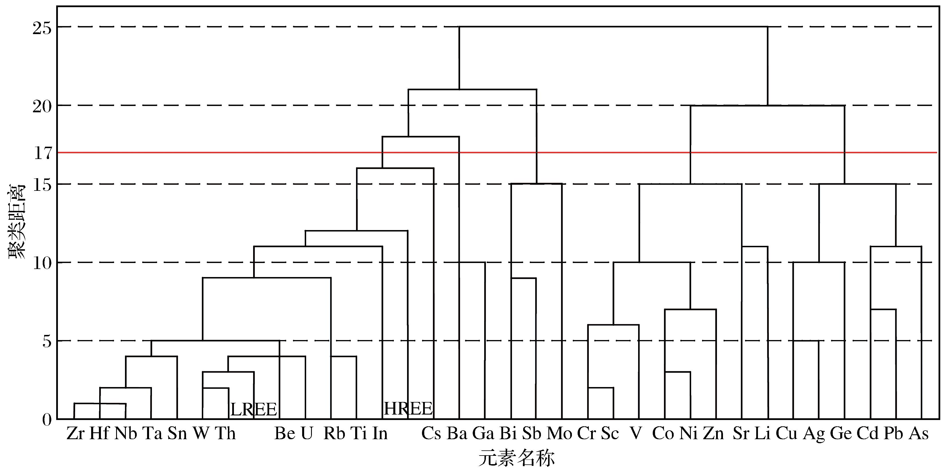 翁孔坝铜矿床地表构造岩R型聚类分析谱系图