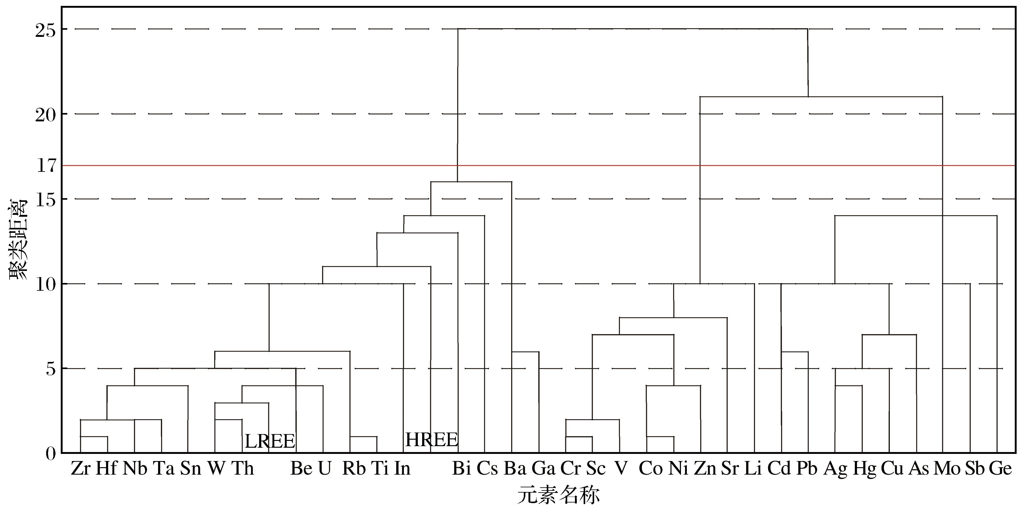 翁孔坝铜矿1 098 m中段构造岩R型聚类分析谱系图