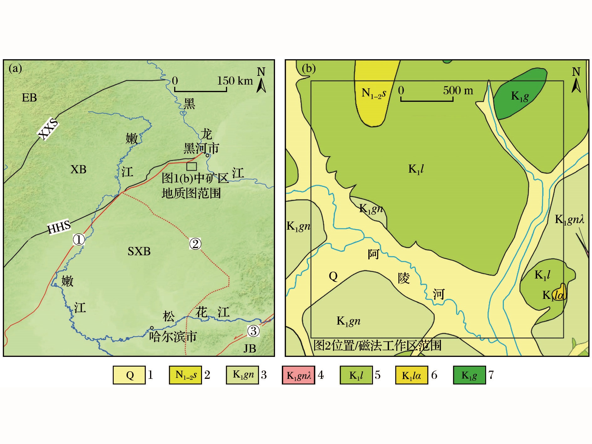 The Xilin area in Guangxi is geologically positioned within the Xilin-Baise fault-fold belt of the Northwest Guangxi Depression on the Yangtze Plate, representing a vital segment of the Au-Sb polymetallic metallogenic belt in the western Guangxi-southwestern Guizhou-southeastern Yunnan region, also known as the Youjiang Basin. To explore the distribution characteristics of ore-forming elements and mineralized bodies, and to achieve advancements in mineral exploration, this study implemented a 1∶10 000 scale soil geochemical survey and prospecting prediction. Through a systematic analysis of geochemical parameters, correlation coefficients, spatial distribution patterns, and single-element/composite anomalies using indicator elements (Au, Ag, As, Sb), three key anomalous zones (GXB-1, GXB-2, GXB-3) were identified for prioritized exploration. The key findings indicate that Au and Sb exhibit high concentration and variation coefficients, suggesting a strong metallogenic potential. Significant correlations have been identified among Au, Sb, and As, indicating their potential as indicator element associations. The skewed distribution patterns of Au and Sb suggest the presence of secondary enrichment processes. An integrated analysis of metallogenic characteristics and geochemical anomalies has led to the identification of five single-element anomalies and two composite anomalies. Trenching verification has revealed three auriferous mineralized zones. The gold mineralization predominantly occurs in silicified clastic rocks of the Baifeng Formation, specifically at structural contacts between NW-trending cross-layer fractures and interlayer fracture zones. These structural features have been established as key indicators for prospecting in future exploration endeavors.