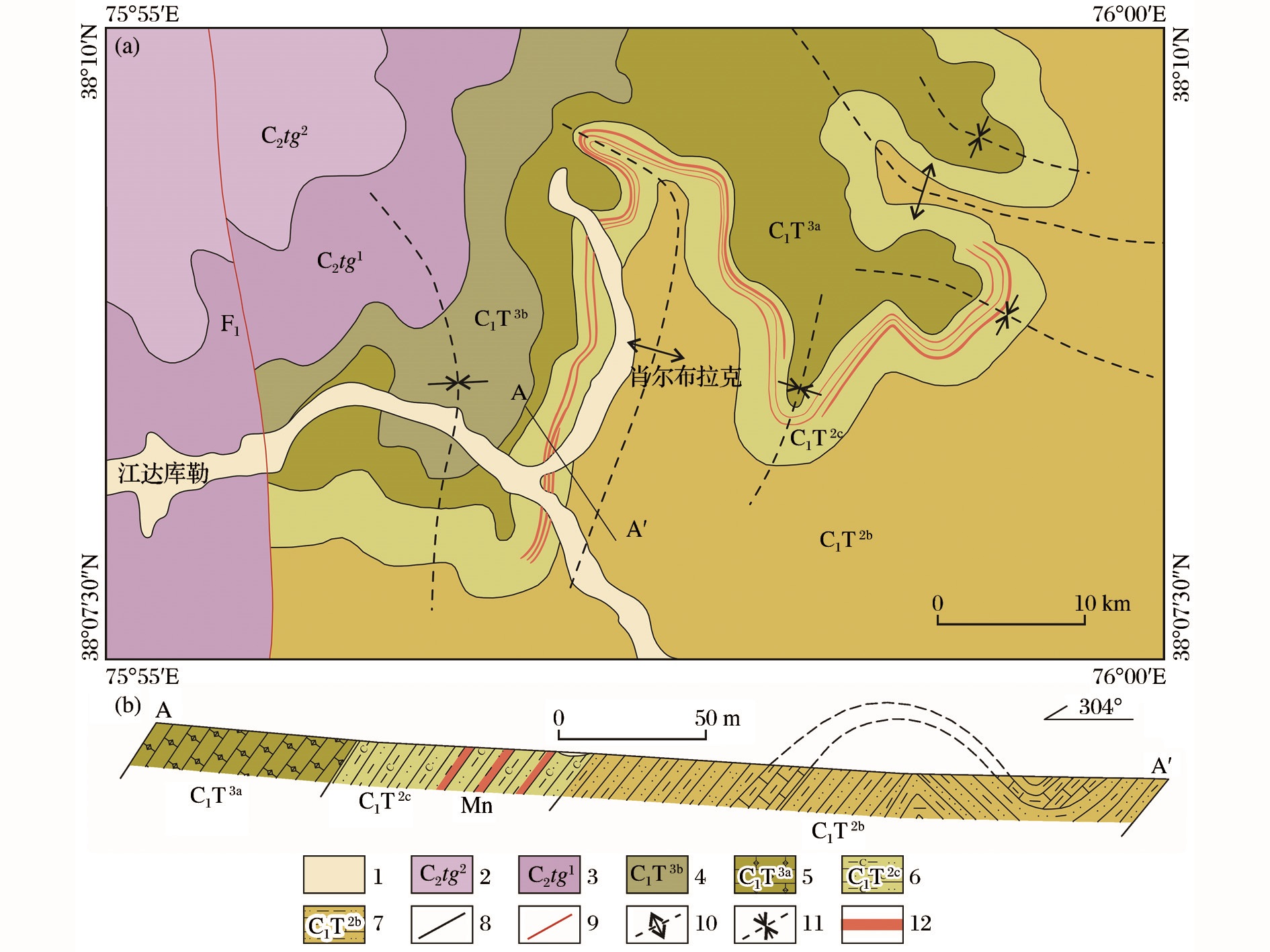 The manganese deposits in China are predominantly of sedimentary type, having formed from the Middle Proterozoic to the Neoproterozoic, the Late Paleozoic, and the early Mesozoic eras. These deposits are chiefly located in South China, with the “Datangpo-type” manganese deposit serving as the most representative example. In recent years, notable advancements have been achieved in the study of marine sedimentary carbonate-type manganese deposits within the Carboniferous sedimentary rock series in western China. Several medium to large manganese deposits, including the Aoertuokanashi, Muhu, and Maerkantu deposits, have been discovered in succession. The Xiaoerbulake manganese deposit, which is the focus of this study, is a newly identified deposit, situated in the Aketao area of Xinjiang Province. This deposit formed at the margin of a continental rift basin, exemplified by Qiaerlong, and is found within the stratified gray-black manganese-mineralized, pyrite-bearing argillaceous limestone of the Lower Carboniferous Talong Group. The deposit is primarily characterized by the presence of three manganese-rich minerals: rhodochrosite, manganocalcite, and kutnohorite. To comprehensively examine the sources of ore-forming materials and the formation environment of the Xiaoerbulake manganese deposit, a series of petrographic, mineralogical, and lithogeochemical analyses were undertaken. The lithogeochemical data reveal that in comparison to the surrounding rocks, the manganese ore is characterized by titanium depletion and low SiO2/Al2O3 ratios, indicative of high-iron, medium-phosphorus, low-grade manganese ore. Trace elements such as Rb, Ta, and Hf are relatively deficient, whereas Th, Sm, and Y are enriched. The distribution of rare earth elements(REE) shows a pattern of light REE depletion and high REE enrichment, marked by a weakly negative Ce anomaly, a positive Eu anomaly, and a positive Y anomaly, suggesting that the manganese deposit originated from submarine hydrothermal venting. Environmental discrimination analysis indicates that the Y/Ho ratio of the manganese ore aligns with values typical of Phanerozoic limestone; additionally, the Sr-Ba ratio, the weakly negative Ce anomaly, and the positive Y anomaly imply that manganese mineralization occurred in a brackish to hypersaline, relatively oxidized depositional environment. The mechanism of mineralization can be described as follows: during the late Paleozoic era, Fe-Mn-enriched polymetallic submarine hydrothermal fluids interacted with seawater. This interaction led to the preferential accumulation of Mn²⁺ and Fe²⁺ ions as mixed (Mn, Fe)-(oxy)hydroxide complexes within redox transition zones characterized by relatively oxygen-deficient, reducing, and mildly alkaline to acidic conditions. These complexes subsequently underwent diagenetic transformation through reactions with carbonate ions, resulting in the formation of manganese carbonate assemblages predominantly composed of rhodochrosite. These assemblages were then transported to favorable sedimentary depressions, where they co-precipitated with carbonate sediments, ultimately leading to the formation of the Xiaorbulak manganese deposit.