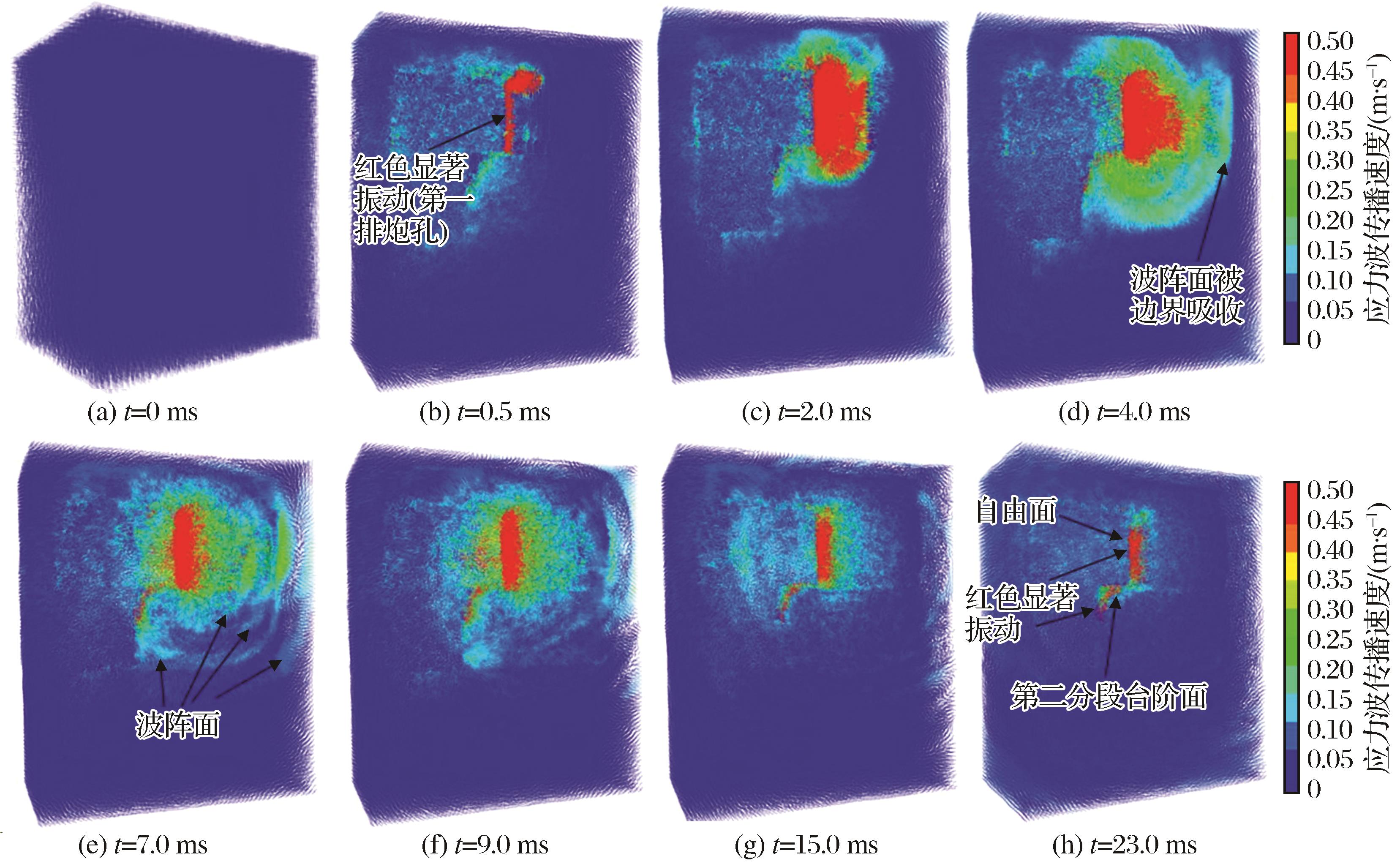 Propagation cloud maps of blast stress wave from second row to fifth row