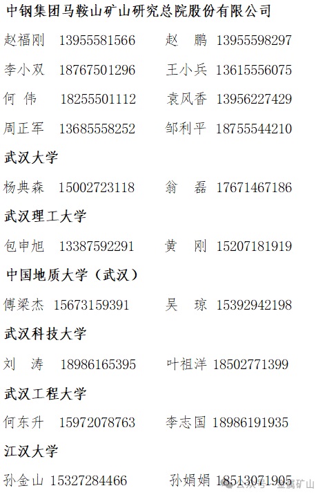 中钢集团马鞍山矿山研究总院股份有限公司 武汉大学 武汉理工大学 中国地质大学(武汉) 武汉科技大学 武汉工程大学 江汉大学 宝武资源有限公司 中国科学院武汉岩土力学研究所 金属矿山开采安全与灾害防治全国重点实验室 矿山边坡安全风险预警与灾害防控应急管理部重点实验室