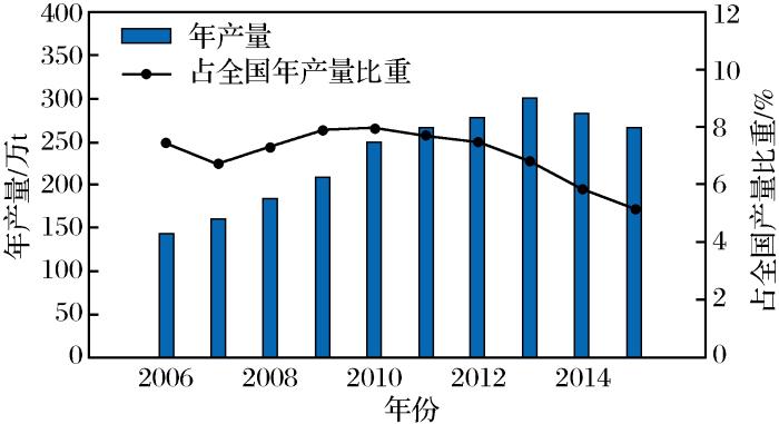 表2 2006~2015年湖南省有色金属工业总产值
