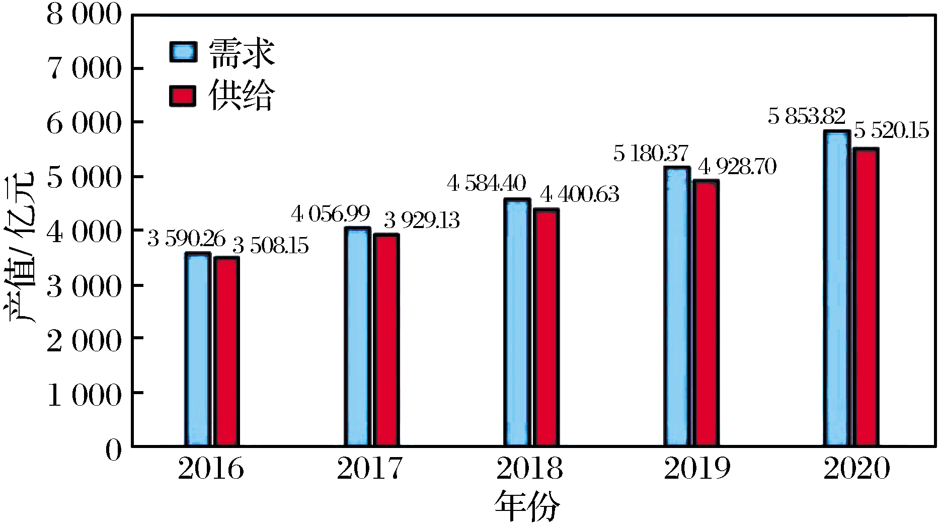 | Fig.2 Supply and demand forecast result of nonferrous metal resources in Hunan Province from 2016 to 2020 |