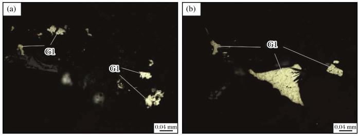 方铅矿:多呈不规则粒状产出,与石英、黄铜矿、闪锌矿为共生关系,形成石英硫化物细脉,或交代早期的矿物[图7(a)]。