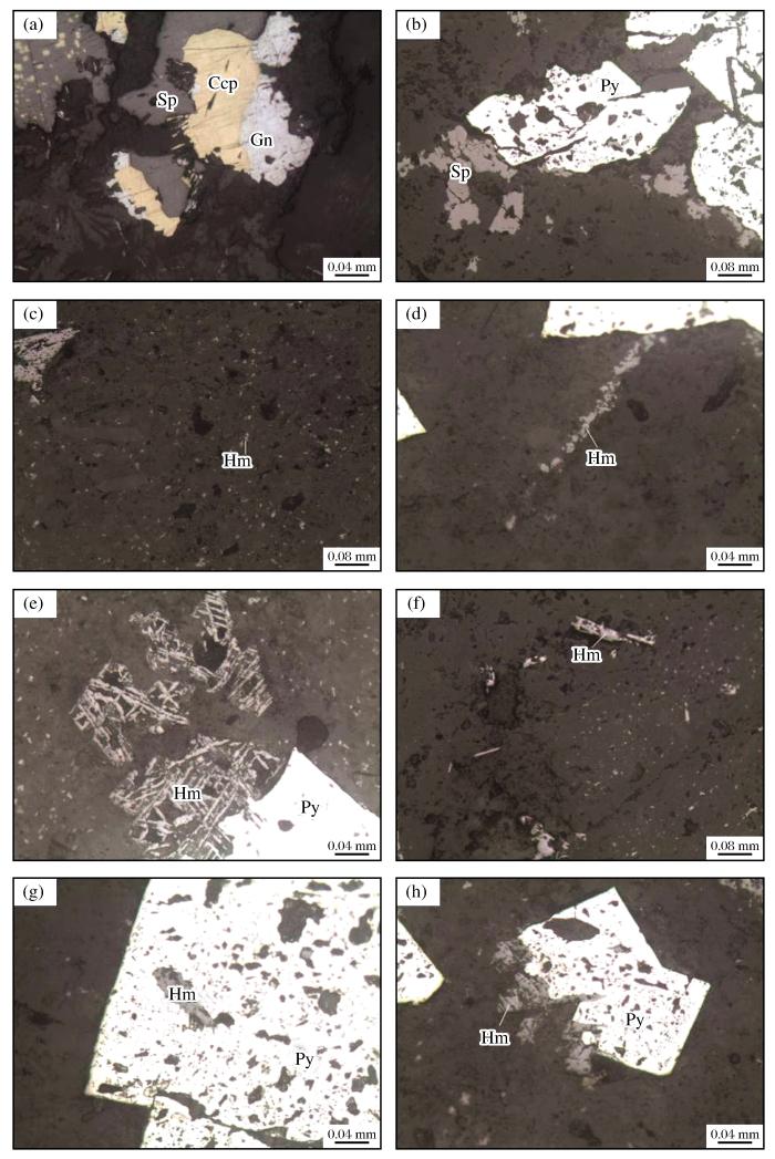 Py-黄铁矿;Ccp-黄铜矿;Sp-闪锌矿;Hm-钛铁矿;Gn-方铅矿