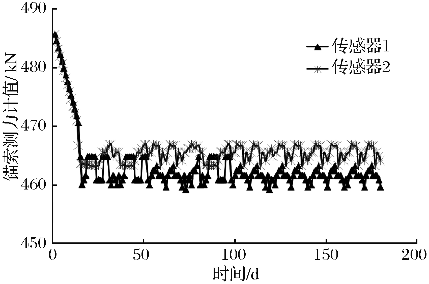 | 图7 锚索束拉力长期监测曲线 |