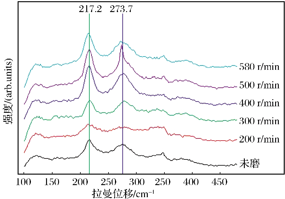 不同磨矿速度下毒砂拉曼光谱图谱