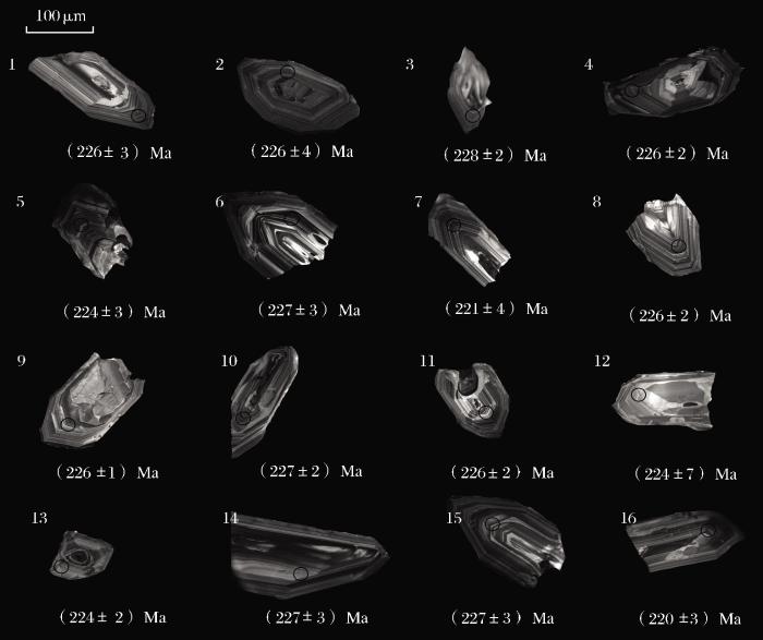 (LA-ICP-MS)U-Pb同位素分析在西北大学地质学系教育部大陆动力学重点开放实验室完成。测试仪器为ComPex102ArF准分子激光器和带有动态反应池的四级杆 Elan6100DRC 型 ICP-MS。普通铅计算按Andersen[12]的3D坐标法进行校正。