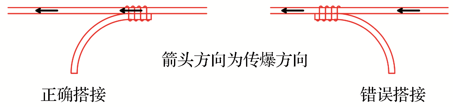 | 图9 导爆索正误搭接示意图 |