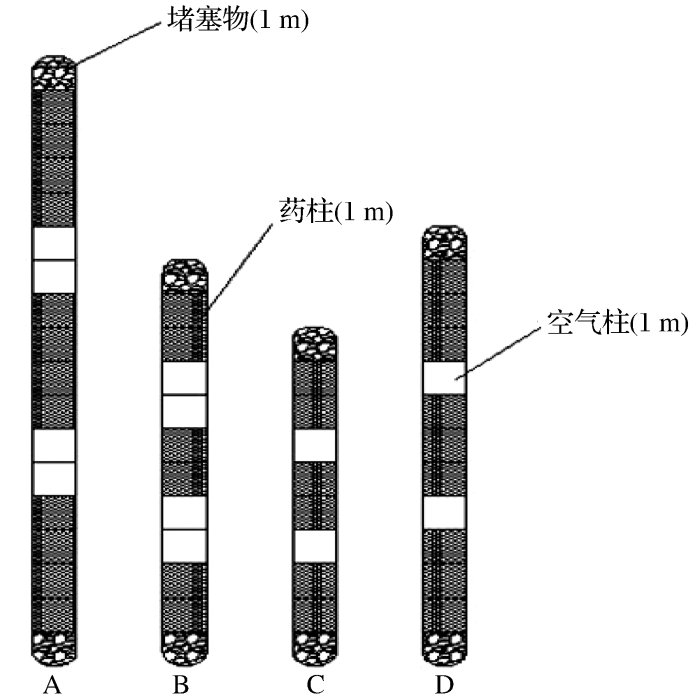 针对上述问题,对装药结构进行优化,以控制爆破危害,从而获得较好的爆破效果。由上文可知,空气间隔装药可以避免连续装药爆破的缺点,降低炸药单耗、控制爆破危害并改善爆破效果。