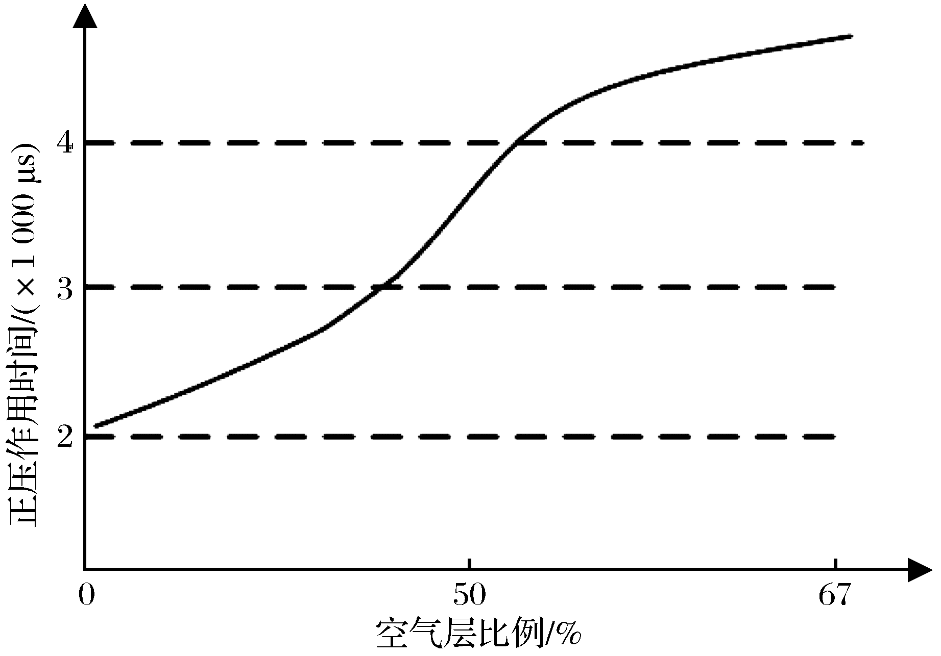 | 图2 正压作用时间与空气间隔层比例的关系曲线 |
