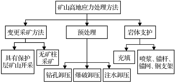 图1 矿山高地应力处理方法[7 ] Methods to reduce excessive stress in mines[7 ] Fig.1 ![]()
