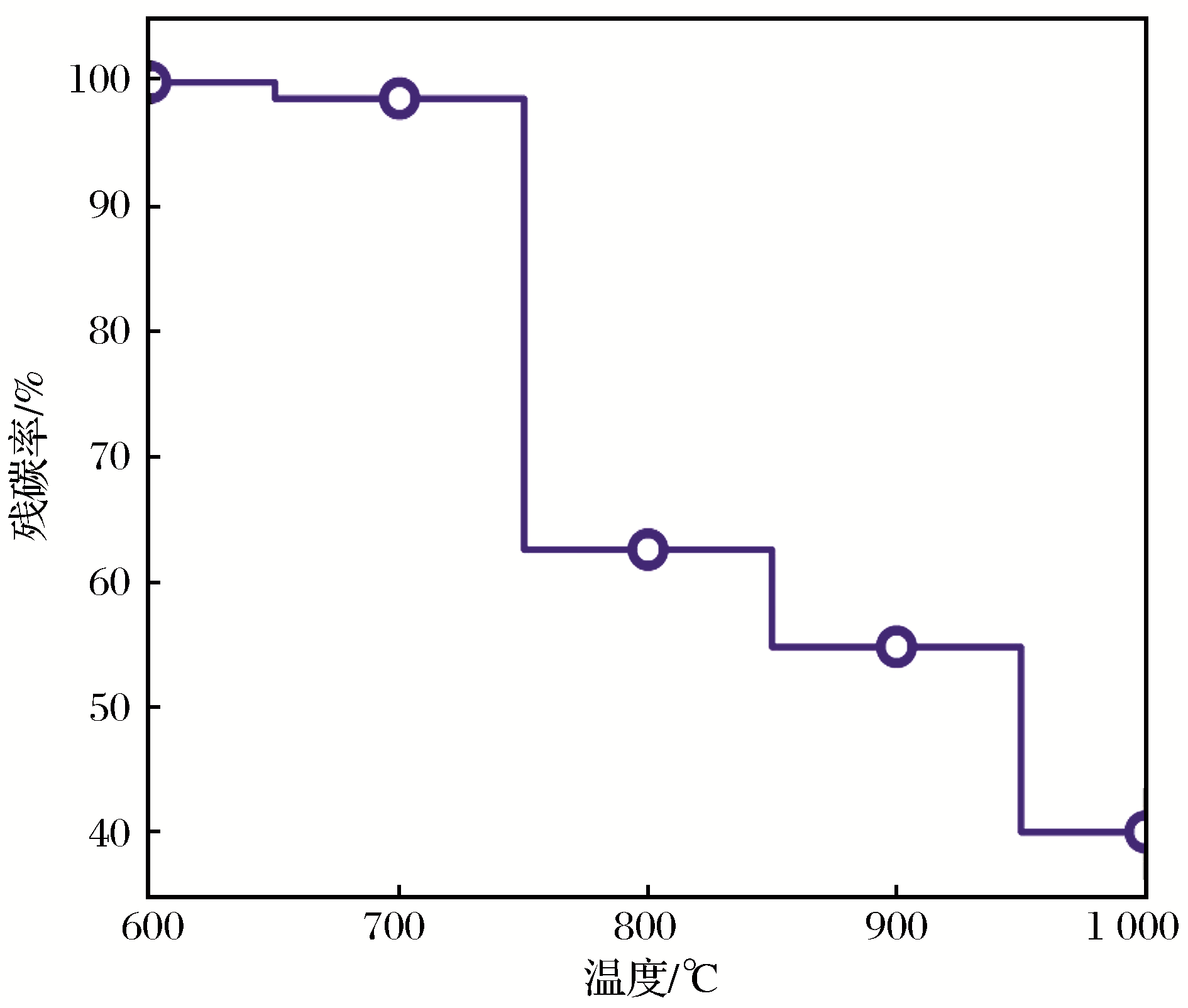 | Fig.6 Residual carbon content in roasted products at different temperatures |