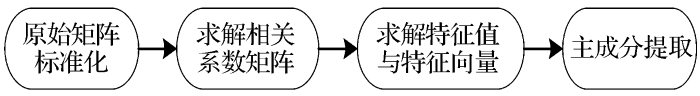 PCA(Principal Component Analysis)即为主成分分析,其主要思想是将之前相关程度较强的P 个指标,经过线性变换后组合成新的互相无关的综合指标,同时最大程度上保持原有数据集的信息。主成分分析主要用于数据降维工作[15 ] 。其基本流程如图1 所示。