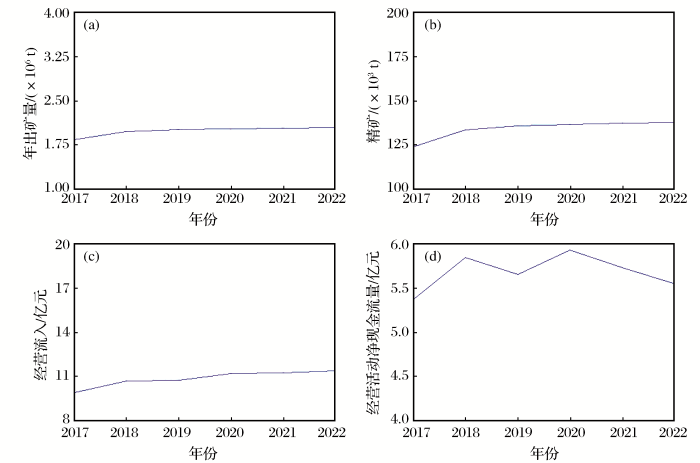 | 年份 | 年出矿量/(×104 t) | 精矿/(×104 t) | 销售收入/万元 | 经营活动净现金流量/万元 |