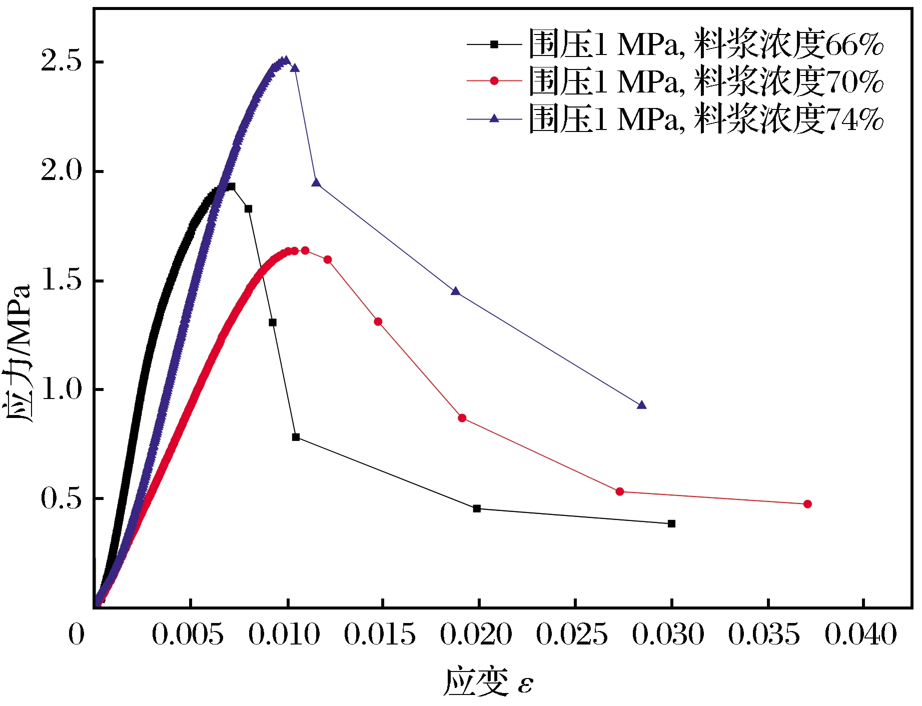 | Fig.2 Stress-strain curves under different slurry concentrations |