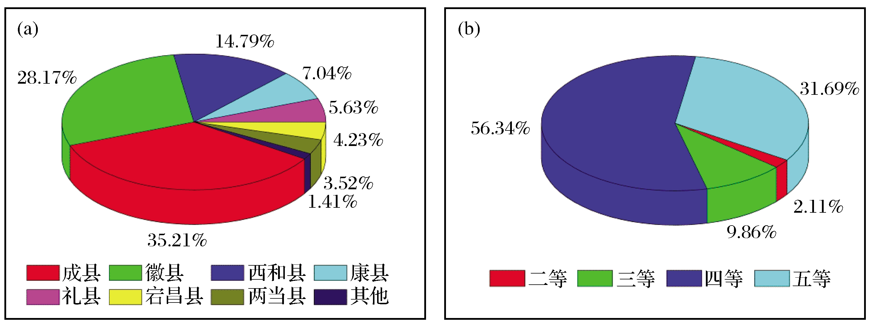 | Fig.1 Regional (a) and scale (b) distribution statistics in Longnan City(2016) |
