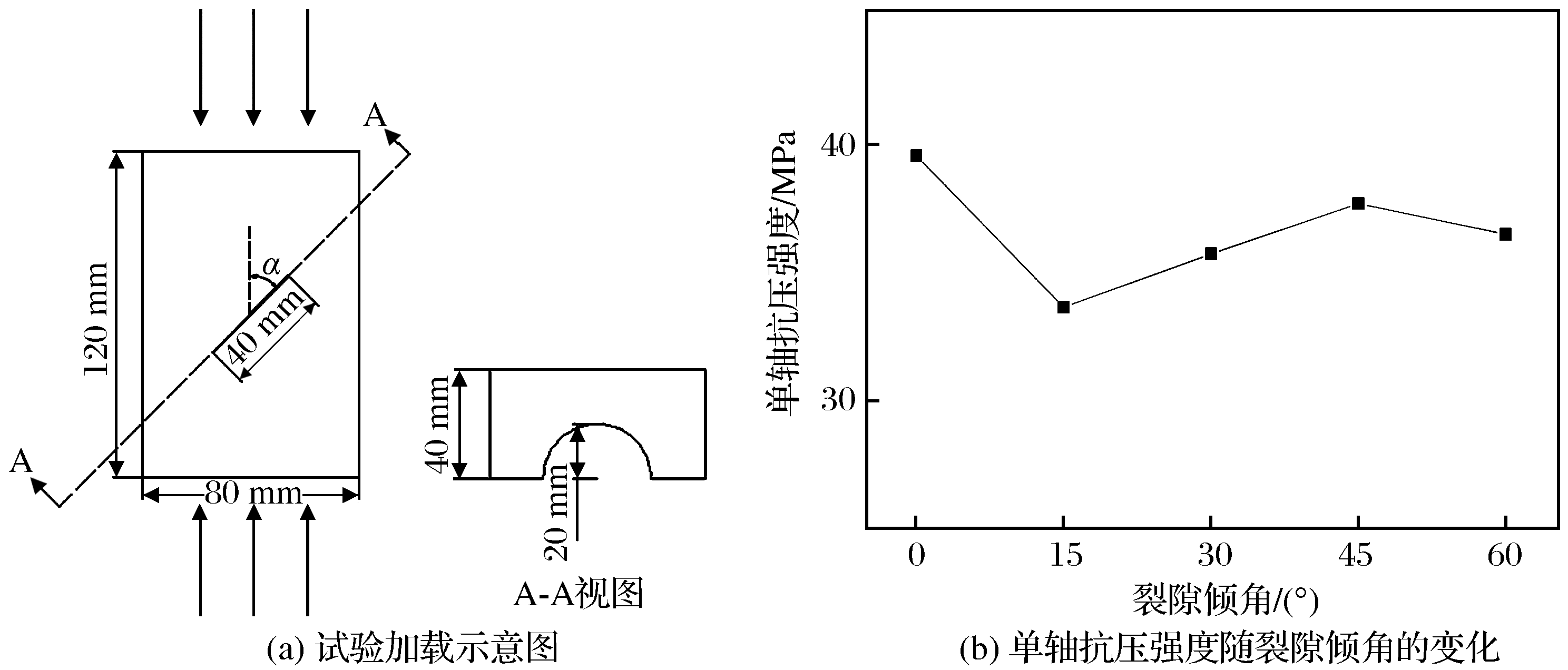| 图2 单轴压缩加载试验示意图及试验结果 |