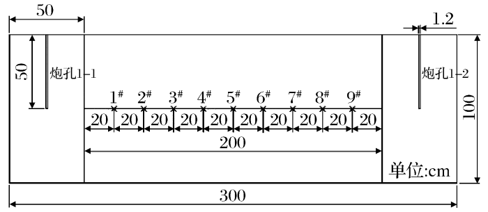 模型试验前对4个模型及对应炮孔进行编号,由于浇筑时每个模型设置2个炮孔,按照二者的对应关系进行标号,以模型1为例,左边炮孔编号为炮孔1-1,右边炮孔编号为1-2,依此类推。