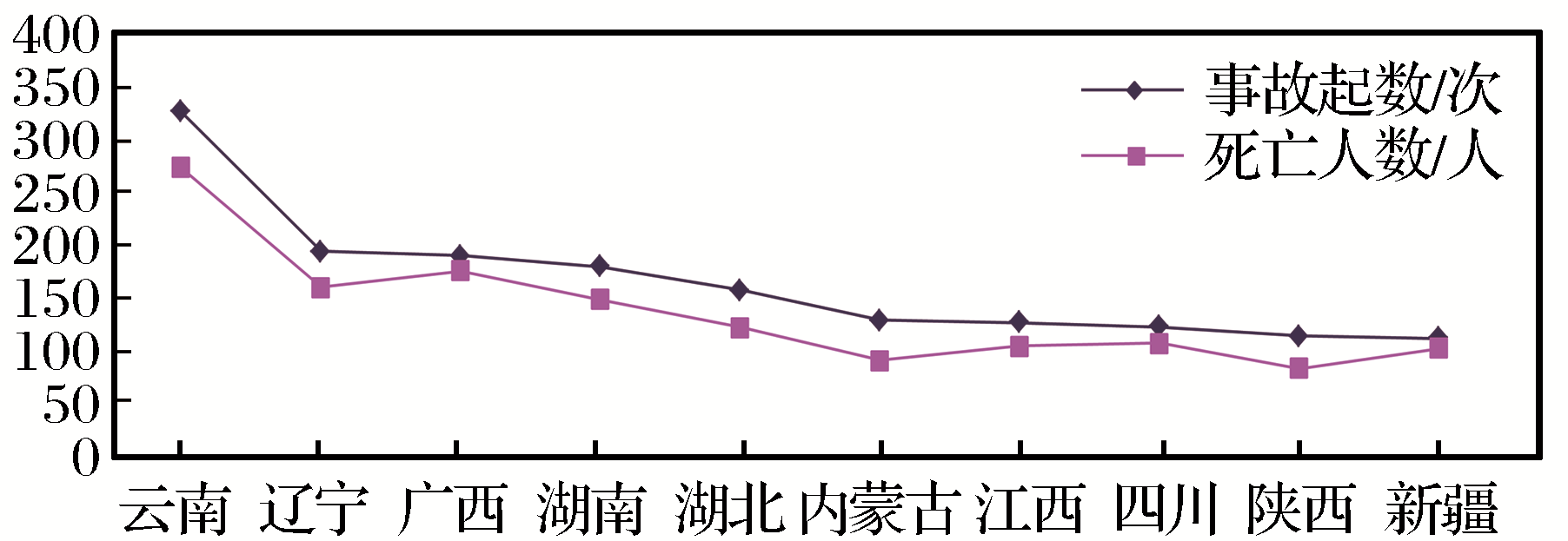 | 图1 2013~2017年非煤矿山事故死亡人数前10名地区事故总量图[ |