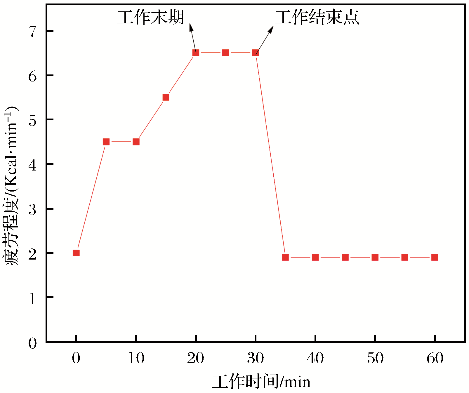 | 图2 手工作业者疲劳程度随作业时间的变化曲线[ |