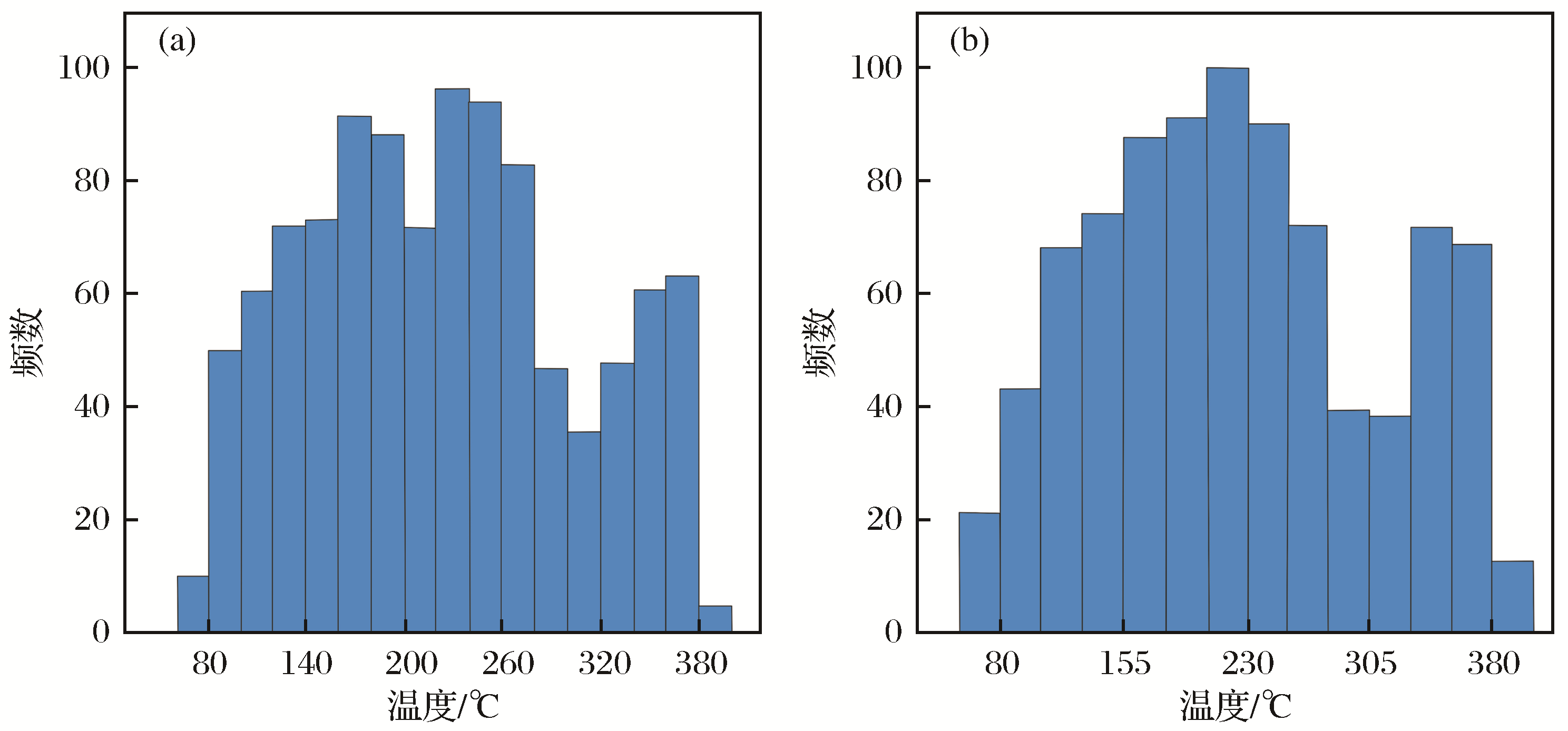 | 图8 1号脉(a)和3号脉(b)黄铁矿成矿温度直方图 |