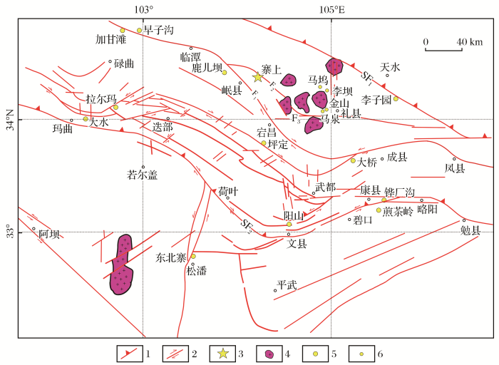 甘肃礼(县)—岷(县)成矿带所处的南秦岭构造带,是中国大陆中央造山系的重要组成部分,发育了一系列金—多金属矿床,如李坝、马坞、金山、马泉和锁龙等金矿床(图1),具有很大的找矿潜力。