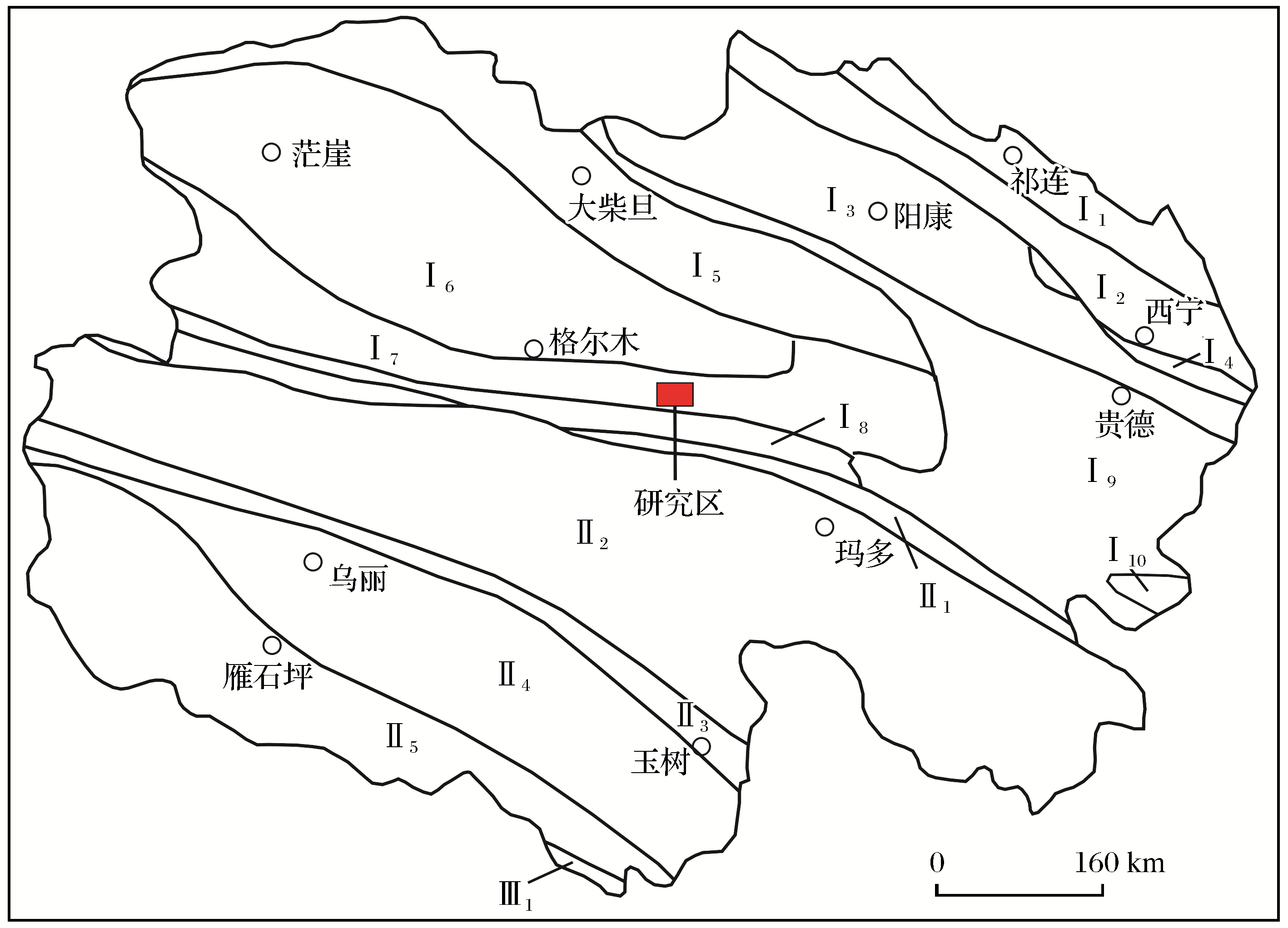 | 图1 都兰县丘吉东沟金矿区域地质简图 Ⅰ-秦祁昆地层区:Ⅰ1-北祁连山分区;Ⅰ2-中祁连山分区;Ⅰ3-南祁连山分区;Ⅰ4-拉脊山分区;Ⅰ5-柴达木北缘分区;Ⅰ6-柴达木盆地分区;Ⅰ7-柴达木南缘分区;Ⅰ8-东昆仑山南坡分区;Ⅰ9-宗务隆—泽库分区;Ⅰ10-西倾山分区;Ⅱ-巴颜喀拉—羌北地层区:Ⅱ1-阿尼玛卿山分区;Ⅱ2-巴颜喀拉山分区;Ⅱ3-西金乌兰—玉树分区;Ⅱ4-乌丽—杂多分区;Ⅱ5-赤布张错—雁山坪分区;Ⅲ-羌南—保山地层区:Ⅲ1-索县—左贡分区 |