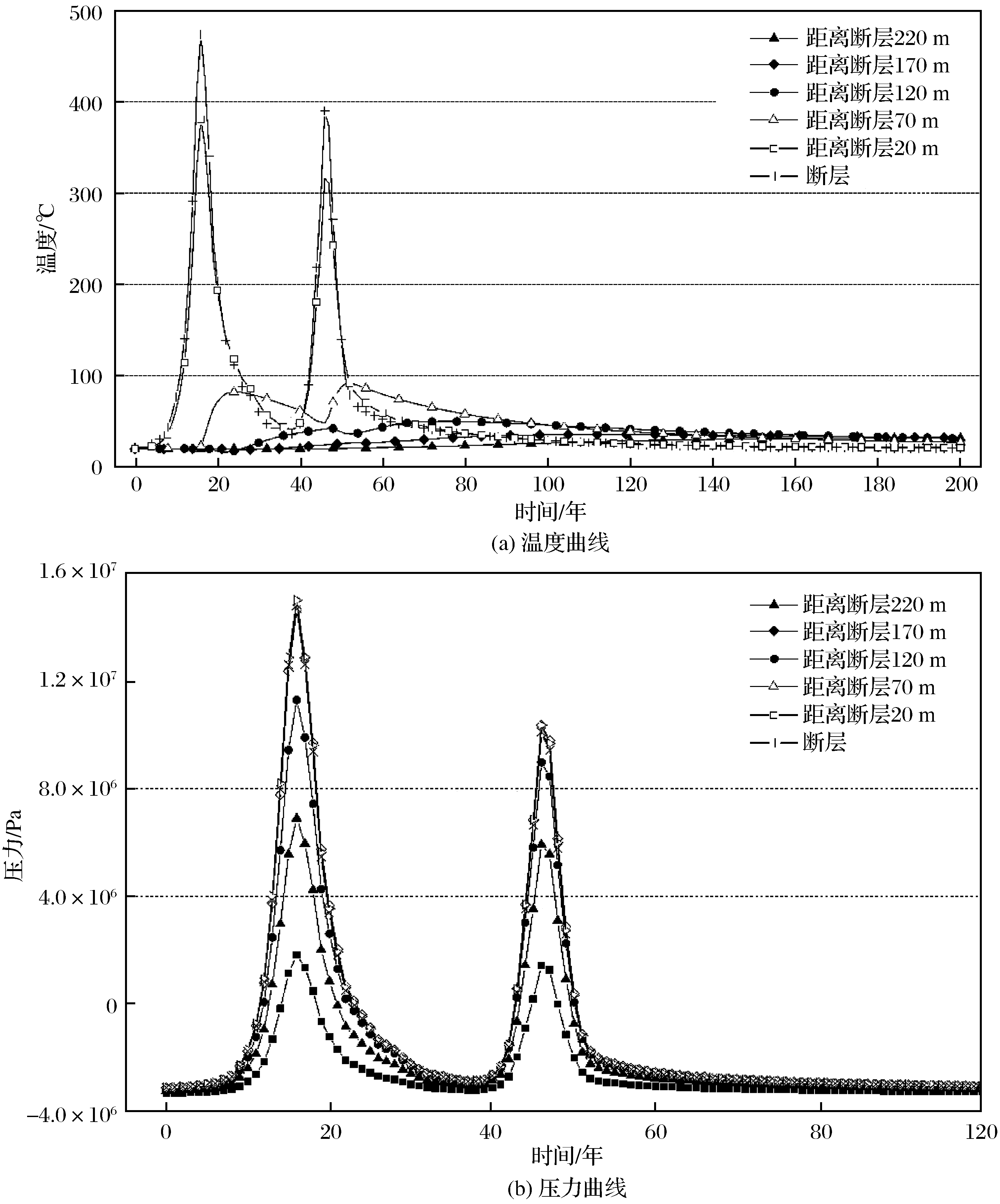 | 图7 第二层基岩中多点温度、压力曲线 |