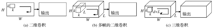 如果输入一段视频,其大小是C×L×H×W(其中C为通道数,L为帧数的长度, H和W分别为每帧的高和宽),3D卷积的卷积核和池化核也是3D的,就是比2D的往里扩展一个维度,所以核大小是d×k×k,其中d为核的时间深度,k×k为空间上的大小。