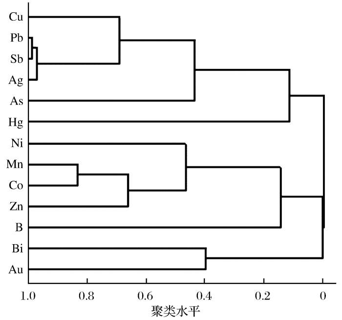 | 相关系数 | Cu | Pb | Ni | Mn | Ag | Zn | Co | B | As | Sb | Bi | Hg | Au |