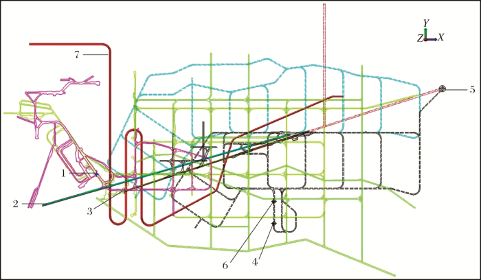 With the rapid development of digital mine,3DMine software has been widely used in mine design institutes.However,for multi-layer gently inclined thin ore group,the traditional two-dimensional underground mining development design mode has some problems,such as low design efficiency,heavy workload and difficult to determine the optimal reference location of development shaft.Under the guidance of the concept of synergetic mining,the 3D synergetic design of shaft location was carried out to accurately plan the spatial layout of the development shaft,improve the efficiency of mining design and ensure the effectiveness of the design scheme.Taking Tongkeng zinc polymetallic deposit in Guangxi Huaxi Group as the engineering background,and referring to the traditional two-dimensional transport work calculation model,considering the influence of ore volume and different burial depth on transport work,a three-dimensional transport work calculation model was established based on straight line distance,and then the vertical shaft development arrangement was optimized and the competition problem of transportation work was dealt with cooperatively.According to the determination method of rock movement parameters recommended by Mining Survey Research Institute in Soviet Union,in the Tongkeng zinc polymetallic mine case,the rock is classified into layered rock mass and rock movement characteristics.Combined with the occurrence form,engineering geological condition,hydro-geological condition,surface topography,geological structure,mining method and rock mass mechanical parameters of the orebody,the rock movement angle of the upper,lower and end of the orebody is determined to be 75% with reference to the actual data of the surface rock displacement of similar mines.With the aid of 3DMine software,the scope of rock movement was delineated,and combined with the proposed three-dimensional transport work calculation model,the preliminary selection scheme of shaft development was given.The set pair analysis method was used to optimize the development preliminary selection scheme with four evaluation indexes of safety,resource utilization rate,transportation work and economic investment.The results show that,based on the three-dimensional transportation work calculation model,the optimal scheme is “newly excavated mixed well and using the No.3 and No.4 blind inclined well development scheme”. Results of this study indicate that,based on the three-dimensional transport work calculation model under the straight-line distance,the transportation competition relationship among different buried depths of the seam is coordinated,which makes up for the shortcomings of the transport work calculation model in the development design,and can accurately plan the optimal spatial reference layout location of development shaft from the three-dimensional perspective,thus providing useful reference for development design.