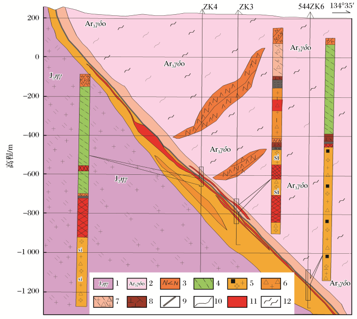 Geological profile of 544 exploration line of Xiadian gold deposit
