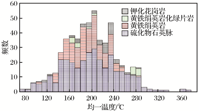 不同矿石类型均一温度直方图