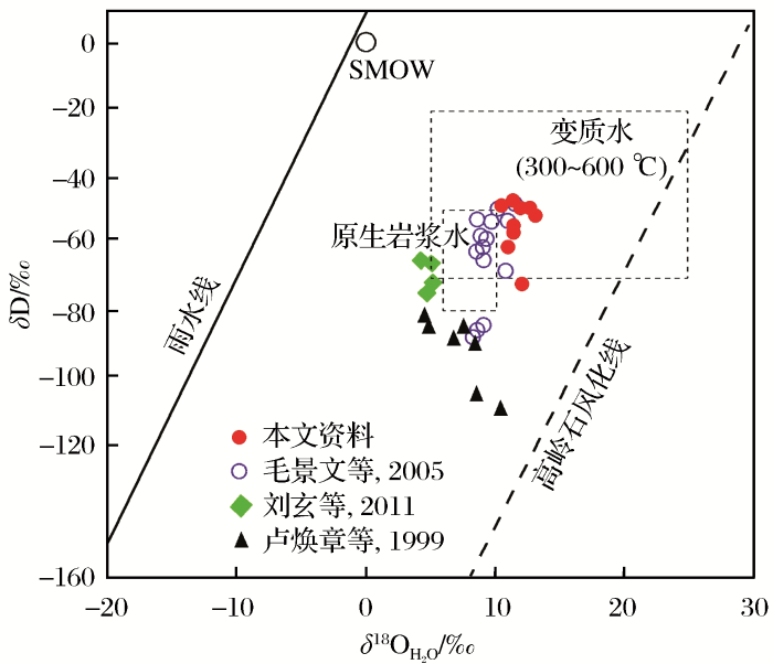 (3)成矿流体H、O同位素特征表明,
