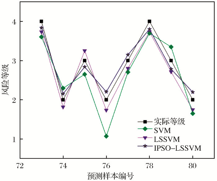 步骤5:验证分析。将验证样本作为最优IPSO-LSSVM模型的输入,获得管道磨损风险预测值,并对预测结果进行综合分析。