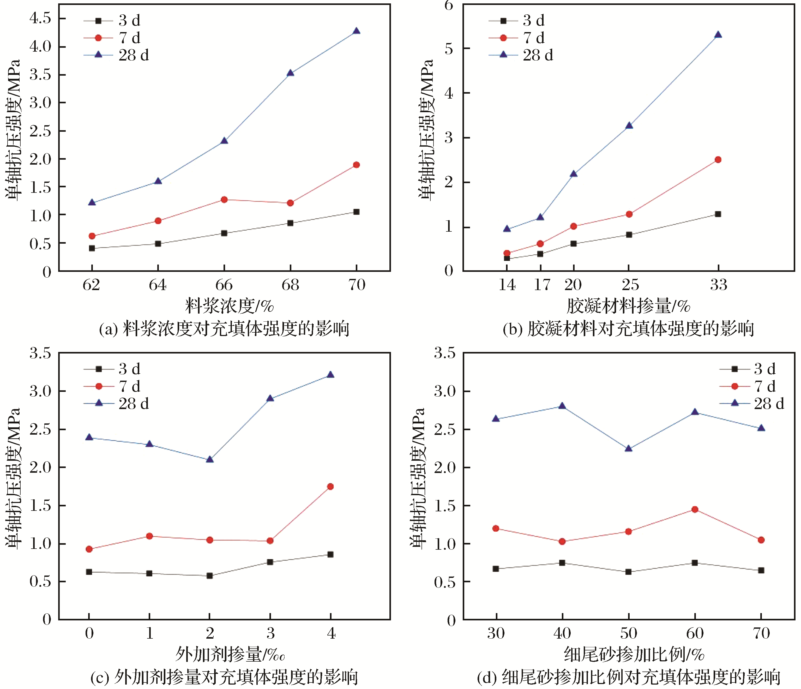 | 图4 不同因素不同期龄的膏体抗压强度 |
