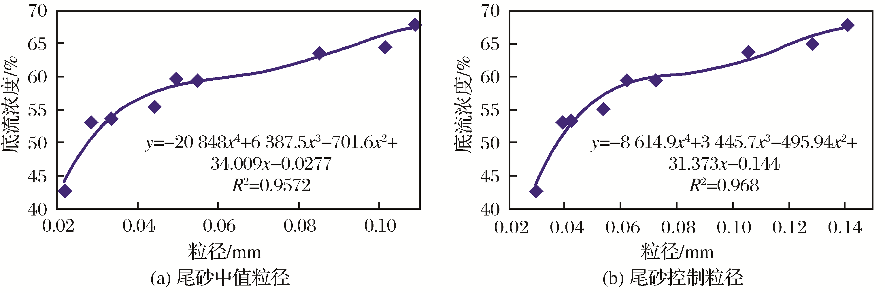 | 图3 尾砂粒径与底流浓度的非线性关系 |
