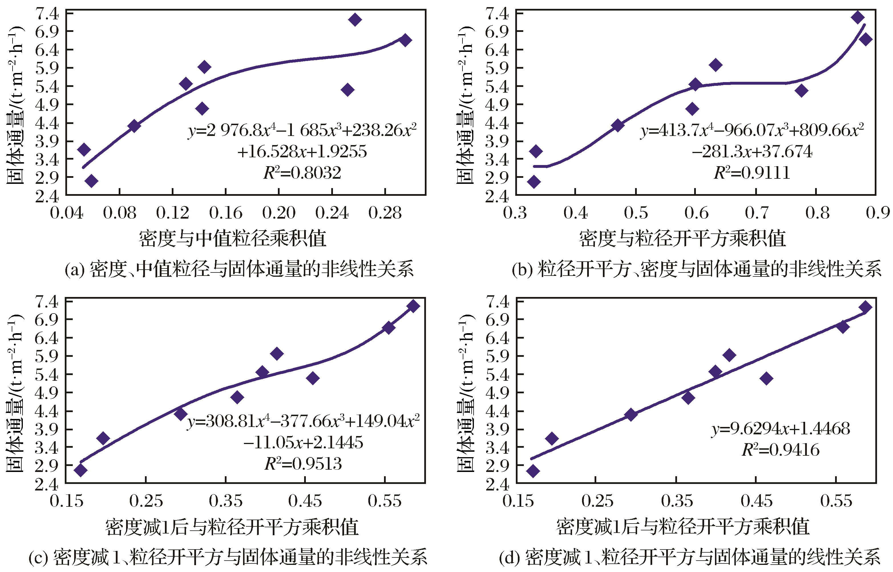 | 图5 尾砂中值粒径、密度与固体通量的关系 |