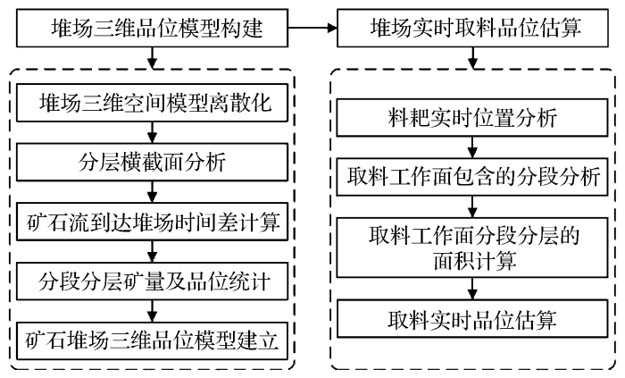 ... 测量技术的飞速发展为矿石堆场空间形态的测量和建模提供了技术手段.汪志明等(2003)提出将GPS RTK技术用于矿料体积和容量的测量,并将其应用于武汉钢铁(集团)公司堆料场矿料体积测量;孔祥元等(2003)将GPS RTK及其同地质雷达GPR集成技术应用于大型企业矿料资产测算;刘波(2019)提出利用三维激光扫描技术获取料堆表面的点云数据,进而通过点云建模方法建立堆场三维模型.研究表明,相比于GPS RTK测量技术,三维激光扫描及点云建模得到的堆场三维模型精度更高(陈鑫等,2016;刘波,2019;Singh et al.,2020;Kuma et al.,2020;周晓卫等,2020).还有学者采用基于单目多视图三维重建方法进行料堆体积测量,在现场仅通过无人机航拍采集图像,将大部分测算工作移至后端处理,不仅降低了施工难度,缩短了外业数据采集时间,而且确保了测量方案的高性价比(张博文等,2020;段平等,2020;罗瑶等,2020;谭金石等,2020;Samaniego et al.,2019;Paul et al.,2019).矿石堆场三维模型的精确建立已具备技术条件,三维矿石堆场模型内部的品位空间分布分析成为堆场精细化管理的瓶颈.国内外学者对矿体、生产区域和爆堆内的品位空间分布情况进行了大量研究(Jin et al.,2011;Huang et al.,2012;毕林等,2016;王李管等,2017;刘占宁等,2018;柯丽华等,2018;谭期仁等,2019),但很少有学者对矿石堆场三维模型内的品位空间分布情况进行研究,其原因是缺乏支撑空间品位分析的样品信息. ...