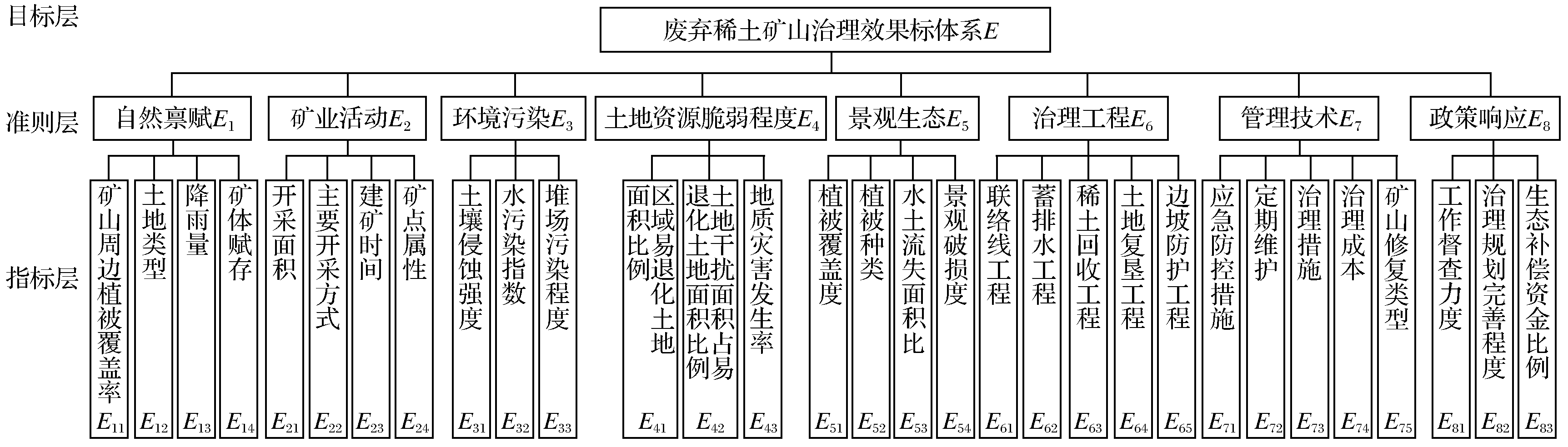 | 图1 废弃稀土矿山治理效果影响因素指标体系 |