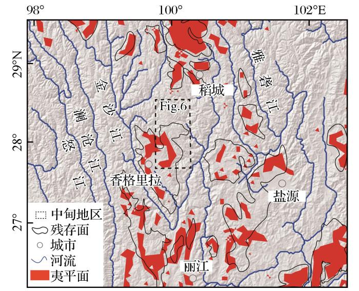 ... 中甸地区夷平面分布图[据Clark et al.(2006)修改]Planation surfaces distribution map of Zhongdian region[modified after Clark et al.(2006)]Fig.5