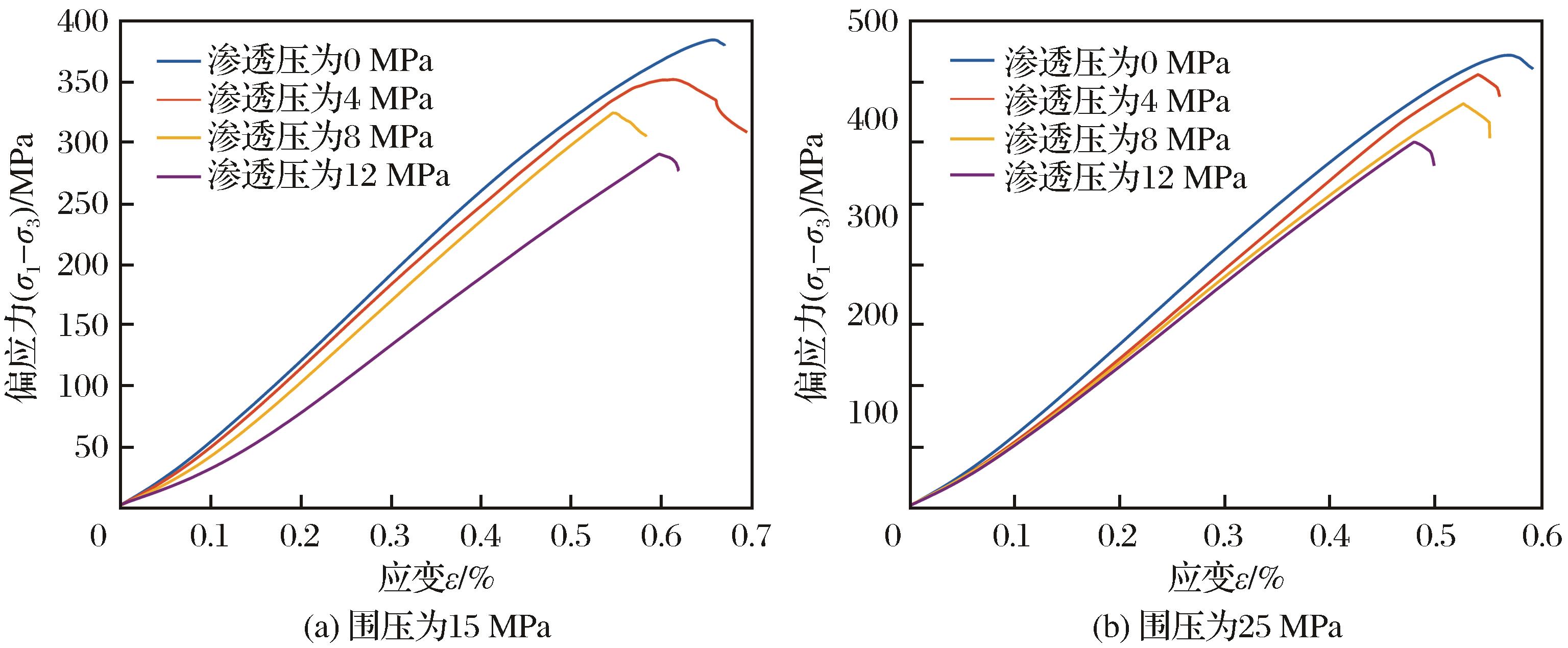 | 图8 不同渗透压下偏应力—应变曲线 |