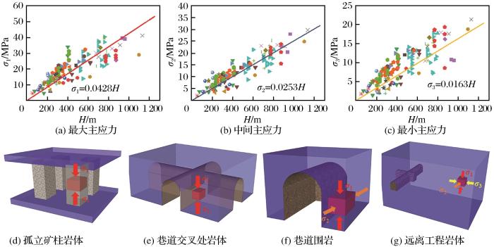 ... Geo-stress levels of underground hard rock engineering in China and the stress conditions of rock mass at different positions[Data in figures(a)~(c)are from Du et al.,2020a]Fig.2