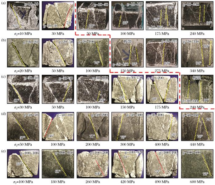 ... 真三轴压缩试验下花岗岩破坏碎片及破裂角(Du et al.,2020b)Fracture fragments and fracture angles of granite under true triaxial compression test(Du et al.,2020b)Fig.115 结论