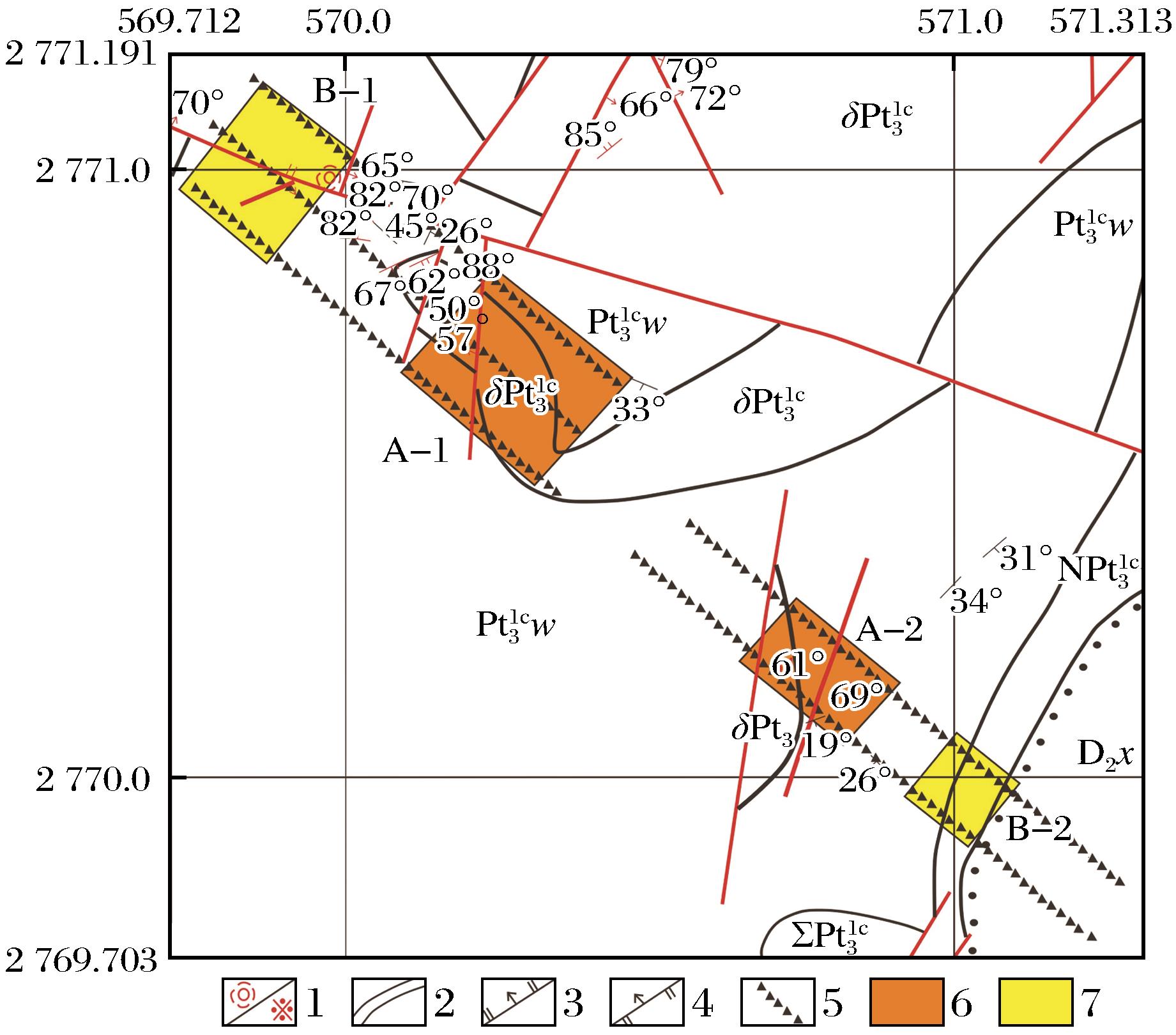| 图7 广西罗城县记洞湾矿区靶区预测图 D2x-泥盆系信都组; |